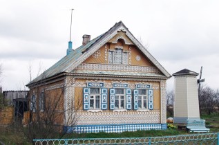 Pewnego dnia pojechaliśmy na wycieczkę na rosyjską wieś, tą z kolorowymi domkami, bez dróg, przez, którą brnie się w błocie, a przed domem stoi wiadro z wodą i szczotka, aby umyć buty. W otwartych wagonach nie było podwójnych siedzeń, lecz poczwórne. Siedziały na nich kobiety w chustach. Na rękach miały kury, kaczki i prosiaki. Na podłodze stały kosze pełne chust i wiejskiego twarogu. Staliśmy w przejściu, bo wszystkie miejsca były zajęte. Było ciasno i duszno, ale egzotycznie.